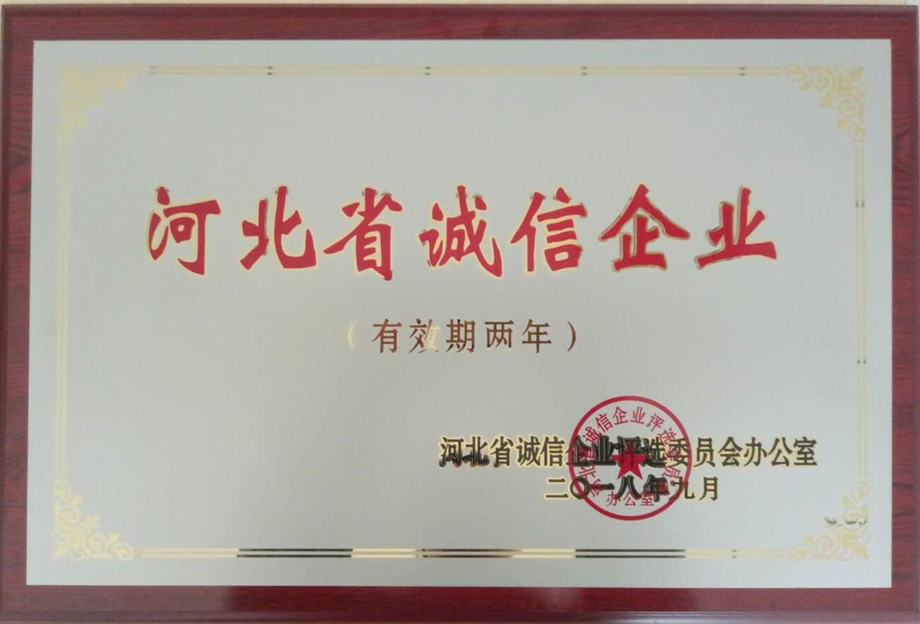 我司榮獲“河北省誠信企業(yè)”榮譽稱號